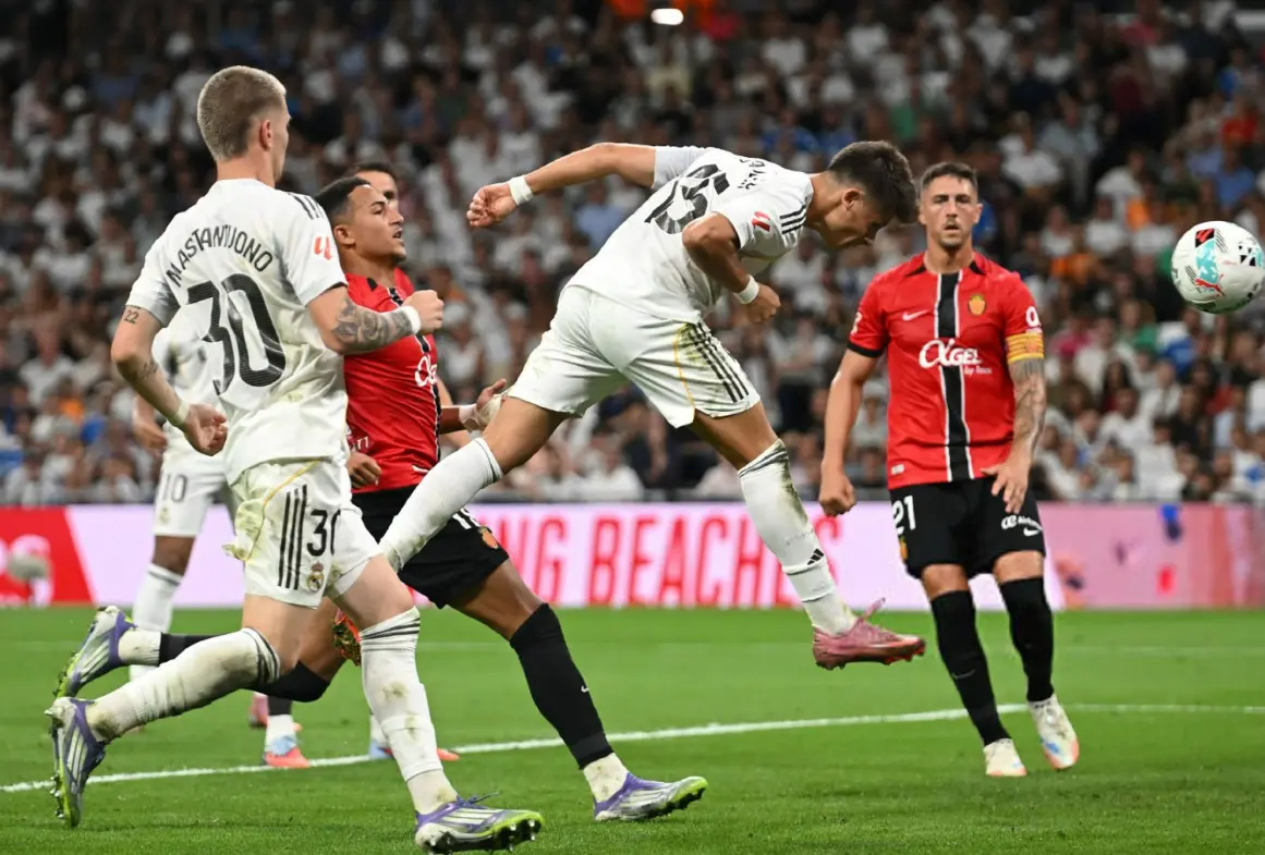 想要延续强势发挥,取得开赛三连胜的银河战舰,此战在伯纳乌派出了最强阵容应敌,在4231的体系中,库尔图瓦镇守龙门,卡雷拉斯、赫伊森、米利唐和阿诺德构筑后防,琼阿梅尼和巴尔韦德搭档双后腰,维尼修斯、居勒尔和马斯坦托诺坐镇中场,单箭头则是姆巴佩,其中18岁16天的阿根廷天才马斯坦托诺创造历史,成为了皇马本赛季主场首发的最年轻球员。